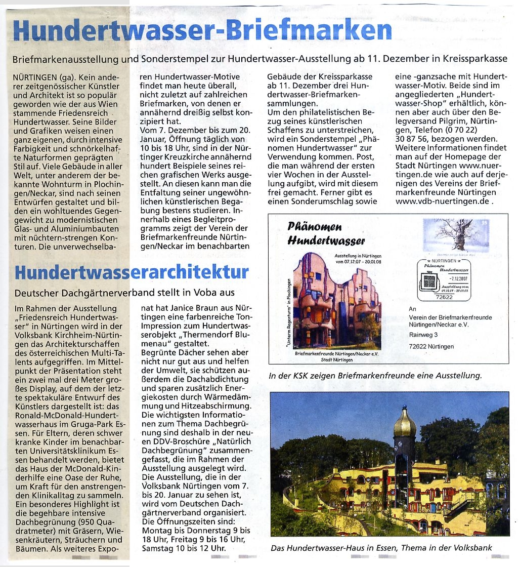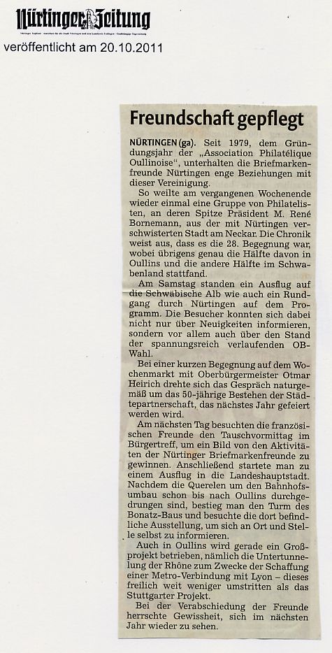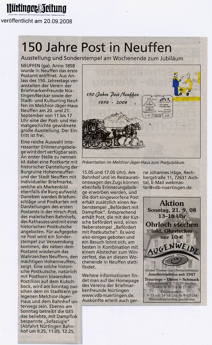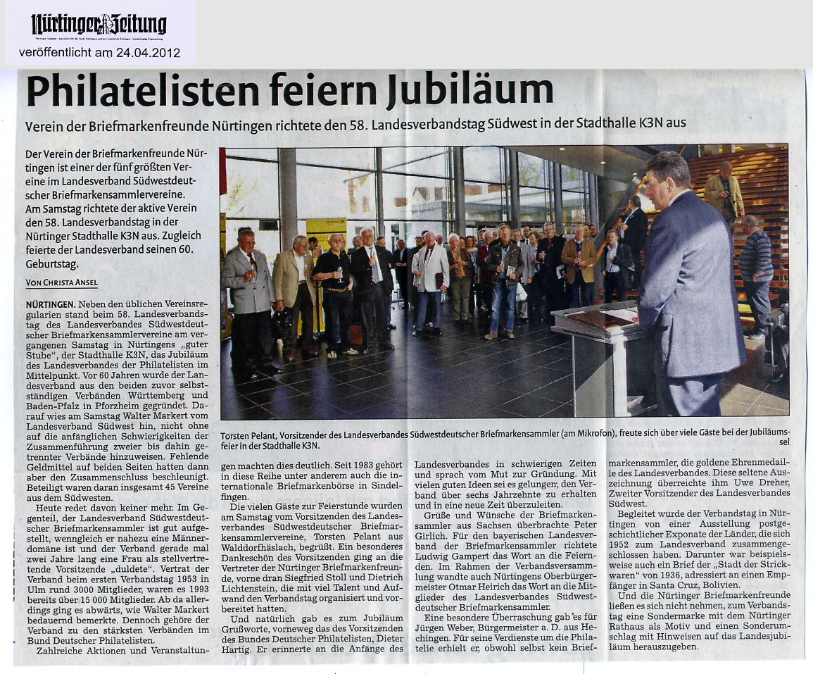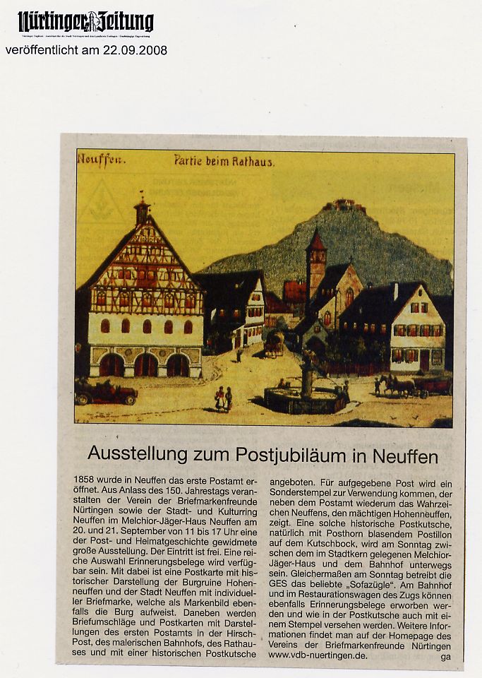 Presseartikel über Veranstaltungen des Vereins der Briefmarkenfreunde Nürtingen / Neckar e.V.