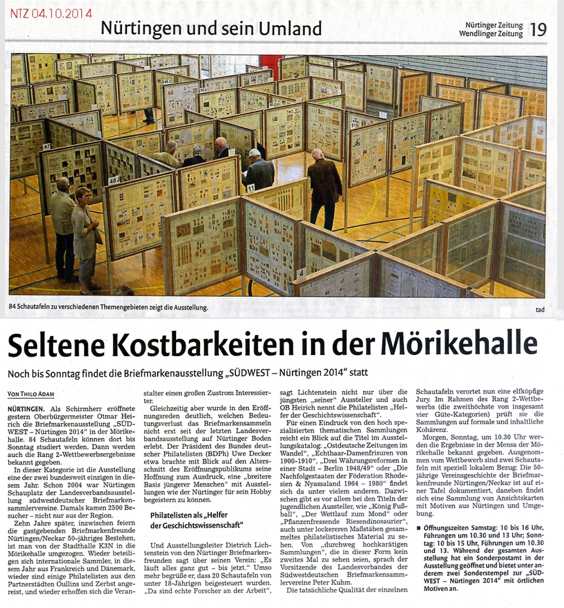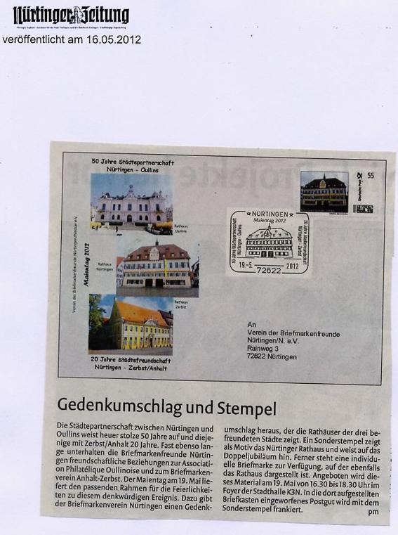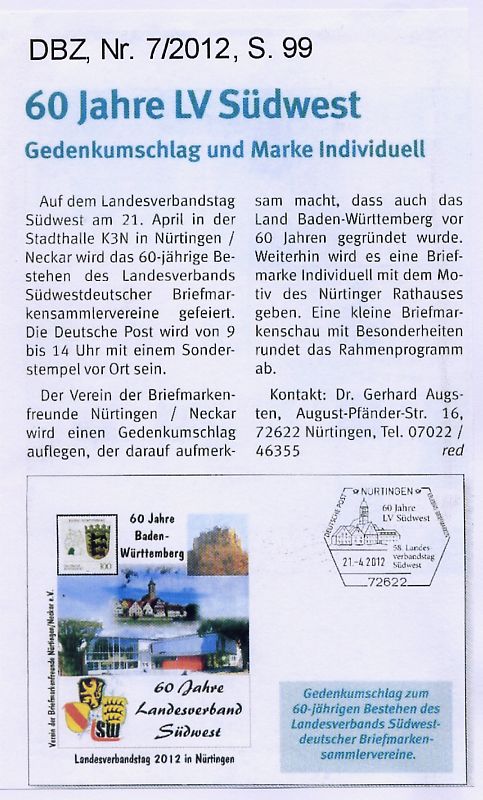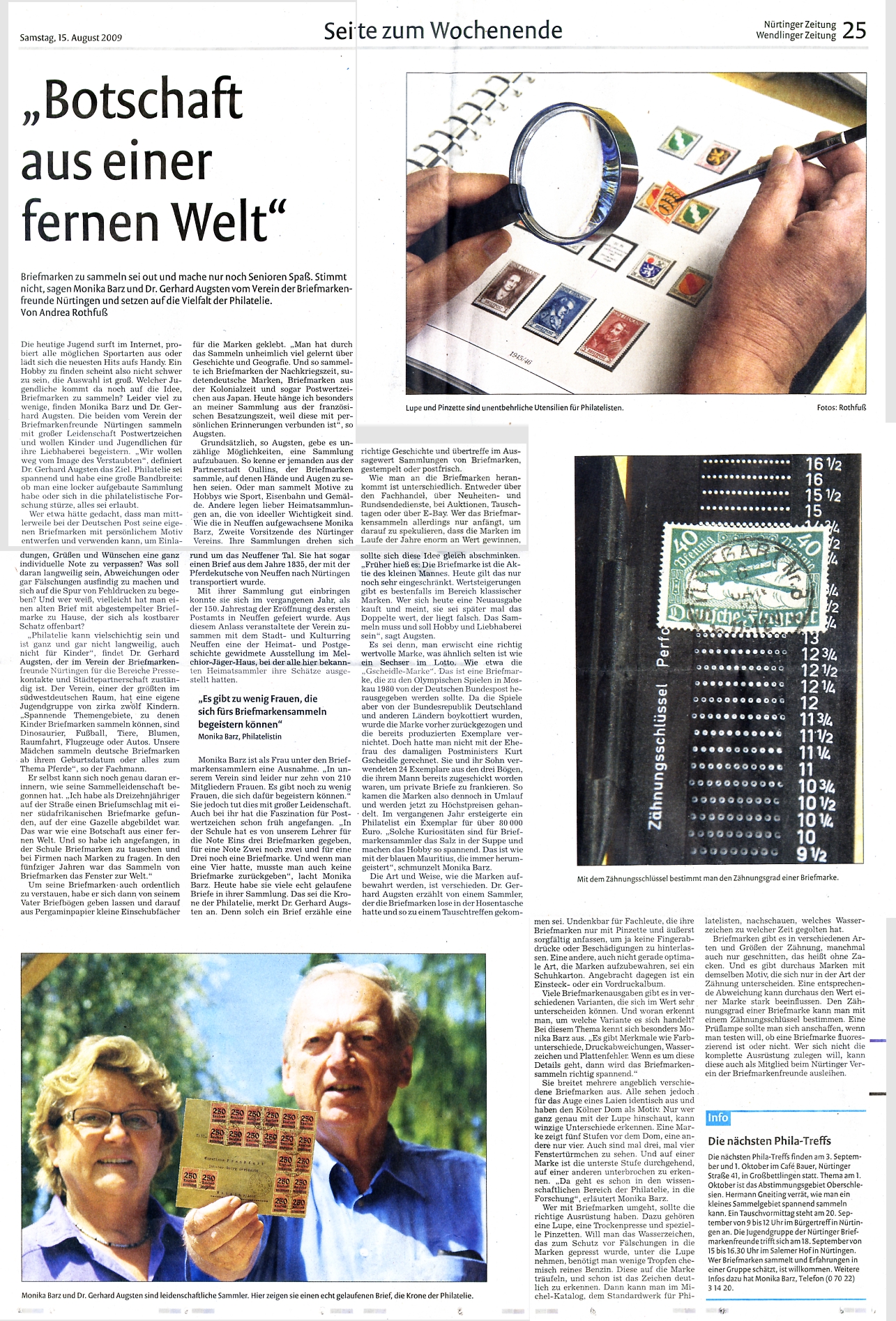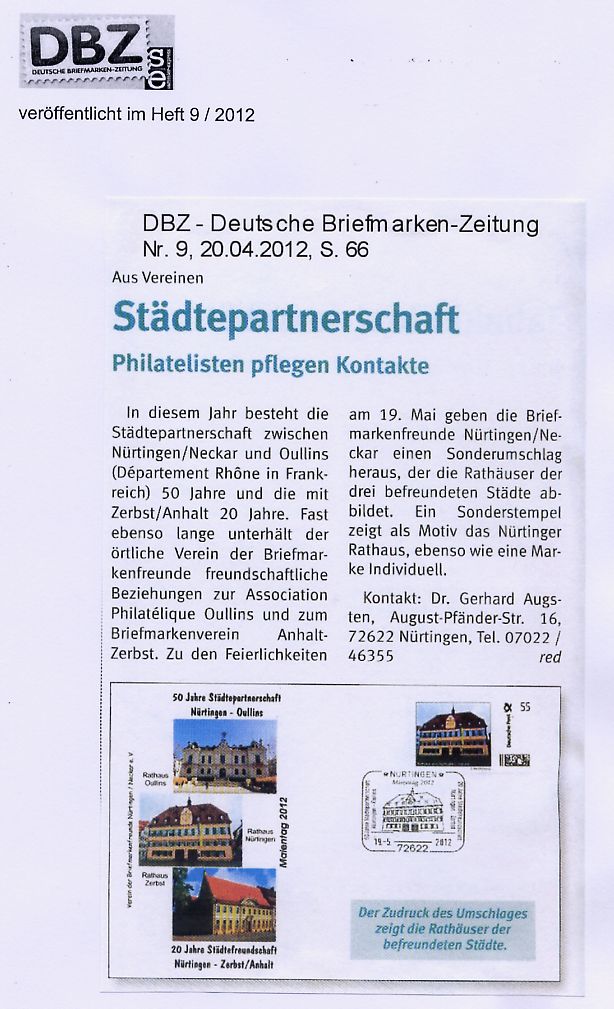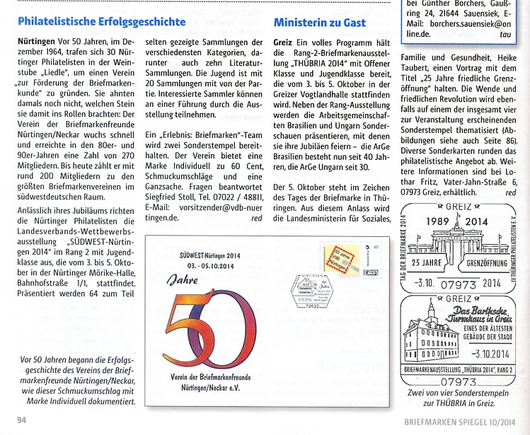 Presseartikel über Veranstaltungen des Vereins der Briefmarkenfreunde Nürtingen / Neckar e.V.